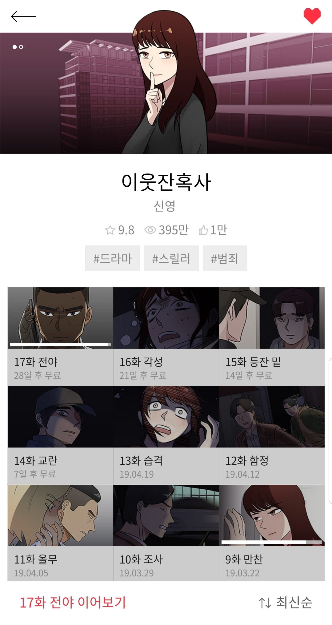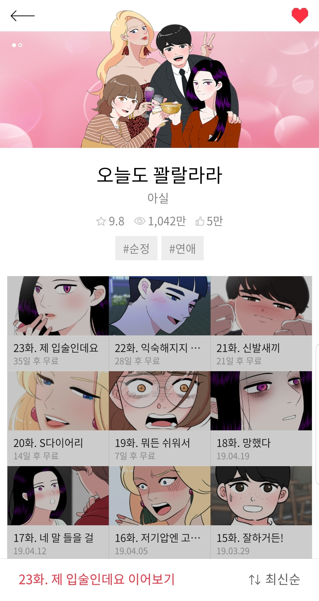 아실 님의 <오늘도 꽐랄랄라>, 신영 님의 <이웃잔혹사>도 나도 모르게 계속 손이 가는 작품이다.