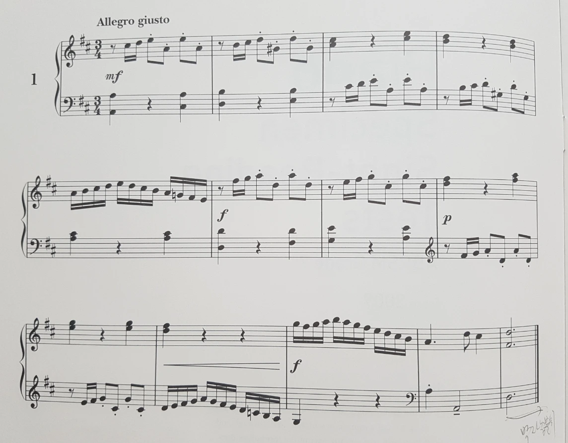 예시로 본 첫 번째 악보는 초등학교 1~2학년인 학생들에게 가르치는 중이다. 두 번 째 악보는 초등학교 때 잠시 피아노를 배웠다가 이번에 다시 시작하신 50대 남자분이 연습중이다. 세 번 째 악보는 ABRSM실기 7급 초견시험 곡이다.