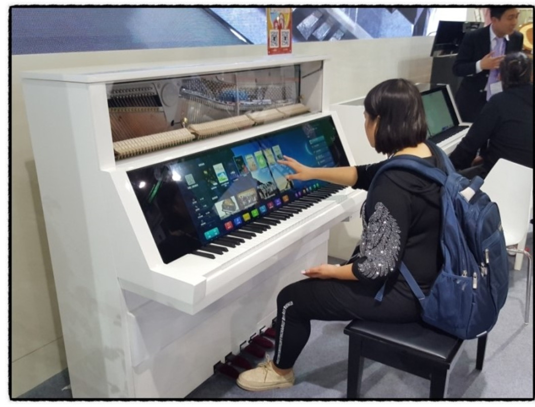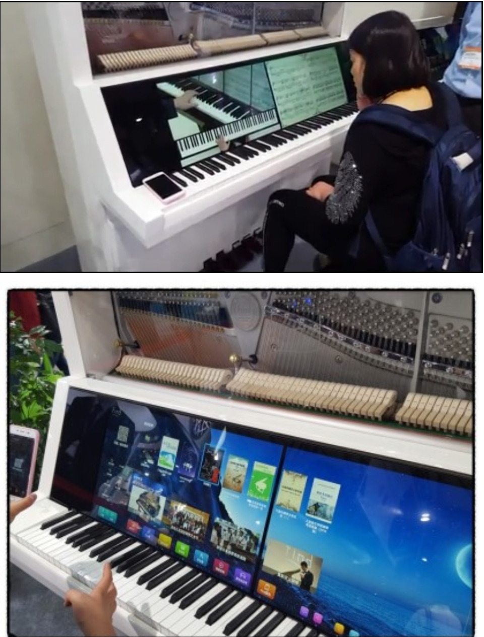 아래의 피아노는 2016년 상하이 국제 악기박람회에서 선보인 피아노이다. 보면대가 터치패드로 만들어져있으며 인터넷에서 악보를 찾아보고 레슨 영상시청이 가능하다.