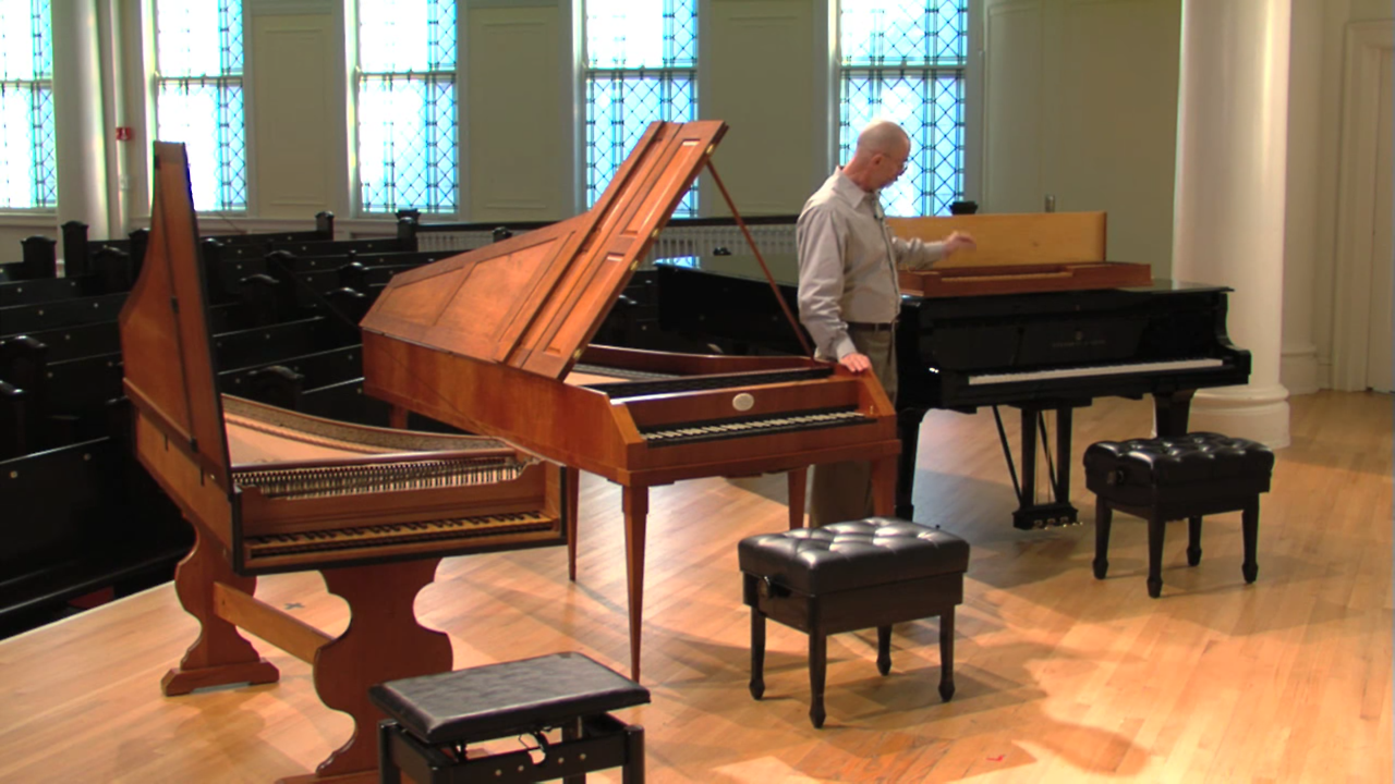 처음엔 기타보다 좀 큰 크기의 상자모양으로 들고다닐 수 있을만한, 소리가 작은 클라비코드. 이후 크기가 좀 커지고 현을 뜯어 소리를 내는 하프시코드. 좀 더 견고해지고 건반수가 58개가 된, 모짜르트나 베토벤,하이든 시대의 피아노,