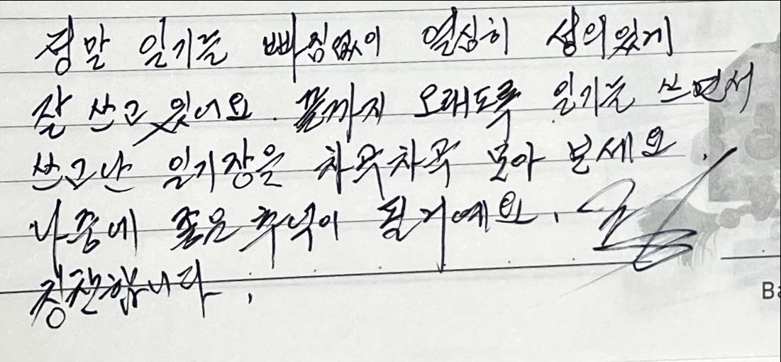 어릴 때의 내가 어떻게 살았고 어떤 생각을 가지고 살았는지를 엿볼 수 있는 기록들이 남아있다는 건 정말 큰 축복이다. 내가 꾸준히 일기를 쓸 수 있도록 도와주고 노트들을 모아둔 엄마에게 가장 큰 감사를 표하고 싶다. 사소한 것이라도 기록을 한다는 건 내가 살아온 길을 다시 꺼내볼 수 있는 유일한 장치다. 누가되었든 이 글을 읽는 사람들도 만약 어렸을 때 쓴 일기장이 남아있다면 다시 들춰보기를 바라고, 없다면 지금부터라도 조금씩 기록 남기기를 추천한다. 언젠가 훗날에 읽었을 때 정말 좋은 추억이자 교훈을 주는 훌륭한 귀감이 될 것이다.