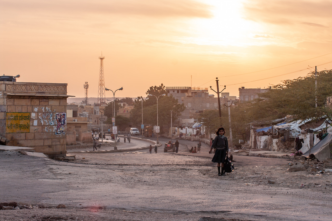 자이푸르에서 출발해서 자이살메르에 도착하는 이른 아침, 입안에서 서걱서걱 씹히는 모래바람에 깨 티티(인도 기차의 차장)가 앉는 의자에서 문을 열고 바라본 기차 밖 흘러가는 풍경과 새벽 어스름이 텅 빈 기차 안의 덜컹거리는 소음과 함께 어우러져 오래전 사람이 살기 척박했던 황량한 오지의 느낌을 자아냈다.