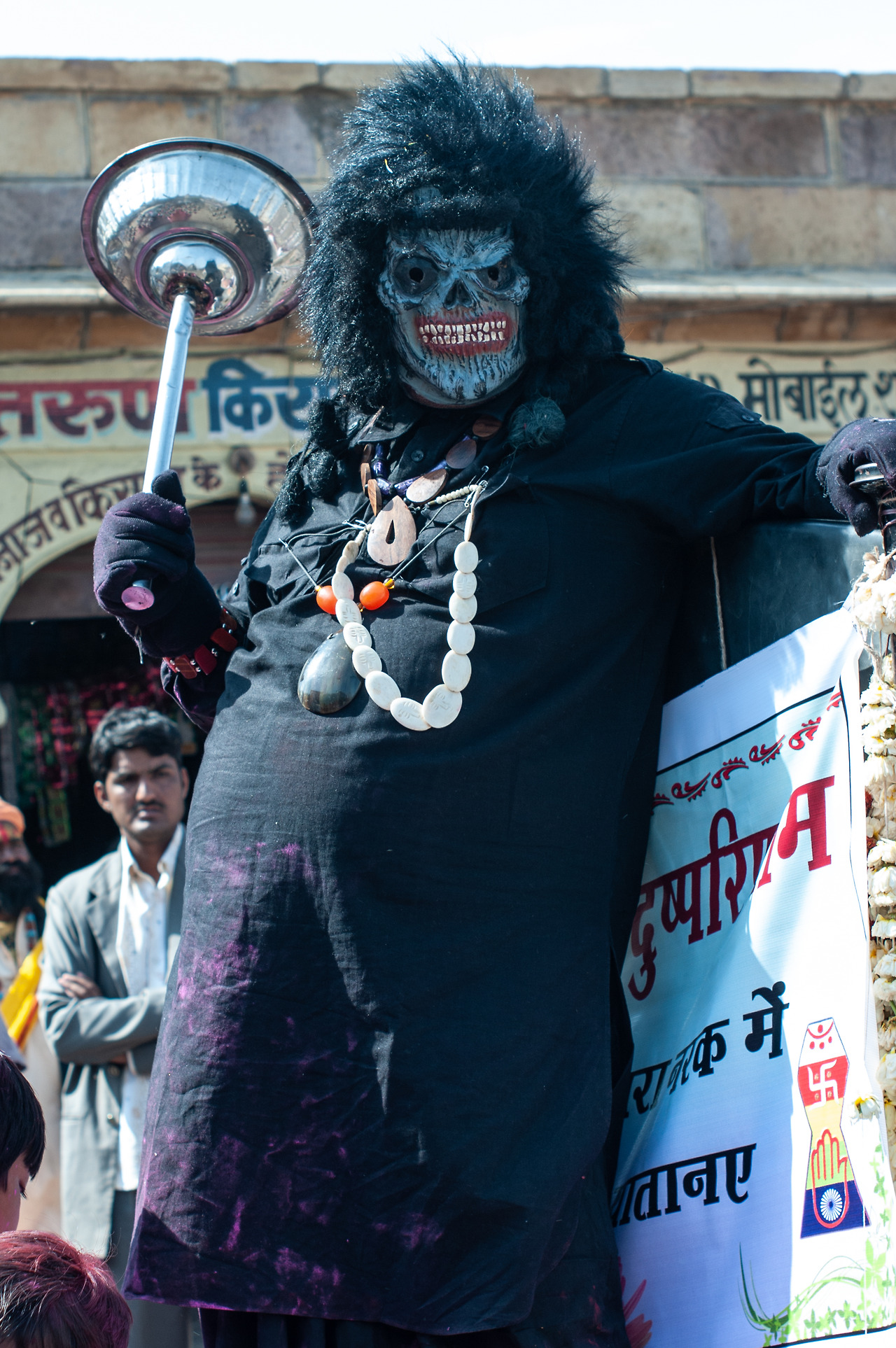 인도의 여러 신들로 분장하고 퍼레이드를 하던 중 본 특이한 신, 지역마다 조금씩 다 다른 것 같은데 하누만이라고 하기에는 너무 다른 모습이어서 지금도 정체가 무엇일까 궁금한 분장.