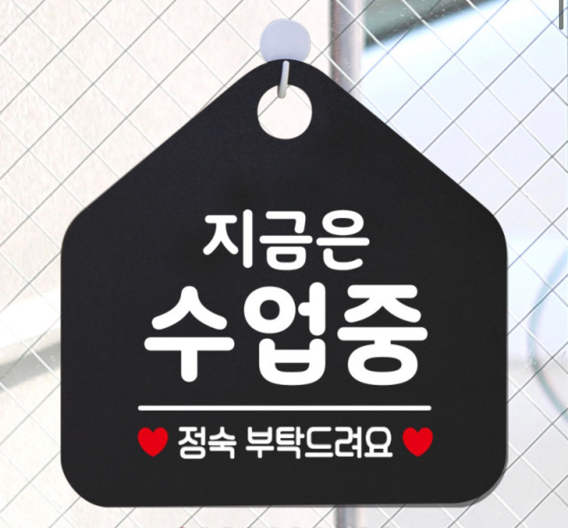 때 되면 밥은 먹고 하는 건지, 잠이 든 건 아닌지 걱정하시는 우리의 부모님께 죄송하지만 온라인 수업 도중에 과일을 갖다 주시거나 자꾸 먹을 것을 대령해주실 때 학생들의 집중도는 떨어진다. 그러니 당장 '수업 중 팻말' 혹은 '공부중 문패'를 검색해서 구매하거나, 비슷하게 만들어서 걸고 분리된 공간을 확보하는 것이 중요하다. (내 수업 때는 강의 시작 전 일부러 큰 소리로 물어본다. "다들 문은 닫았니?")