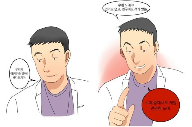 젊은 기운이 넘쳐나고 쾌활한 대학 캠퍼스에서 시험기간도 아닌데 가방도 없이 비루한 옷차림으로 좀비처럼 지나다니는 사람들은 높은 확률로 대학원생일 것이라는 말이 있다. '대학원생'을 검색하면 유명한 짤방들이 쏟아져 나오는데, 모두 측은한 이야기들 뿐이다. 오늘은 교육은 교육이지만 내가 받고 있는 대학원 교육에 대해 살짝쿵 얘기해볼까 한다.