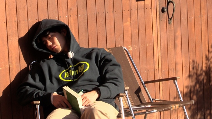 책을 보다 벤치에서 햇빛을 받으며 잠시 눈을 감은 보검이도 빛이 난다.