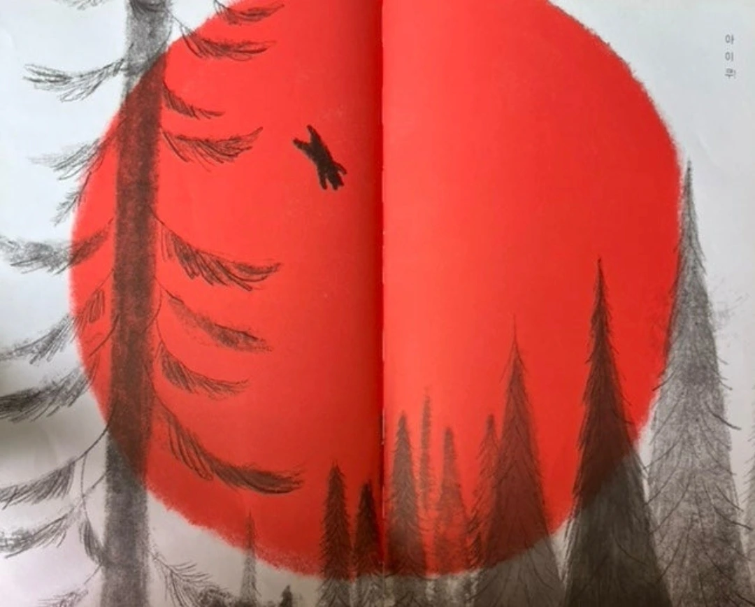 곰은 나무를 오르다 빨간 열매의 빨강을 보면 ‘앗!’하고 기대하지만, 애벌레, 다람쥐, 벌집이라 제친다. 결국 나무의 끝에 다다르고, 아무것도 없는 현실을 맞이한다. 그리고 빨간 열매가 아닌 빨강을 쫓으며, 장엄하게 빛나는 빨간 태양에게 몸을 던진다. ‘이거라도!’라는 듯이.