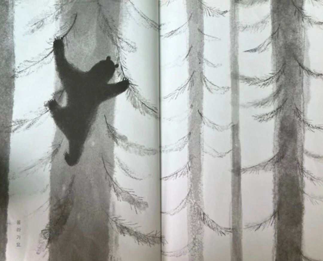 [빨간 열매]는 꽤나 커 보이는 까만 아기곰이 빨간 열매를 찾으러 나무를 끊임없이 오르는 이야기이다.