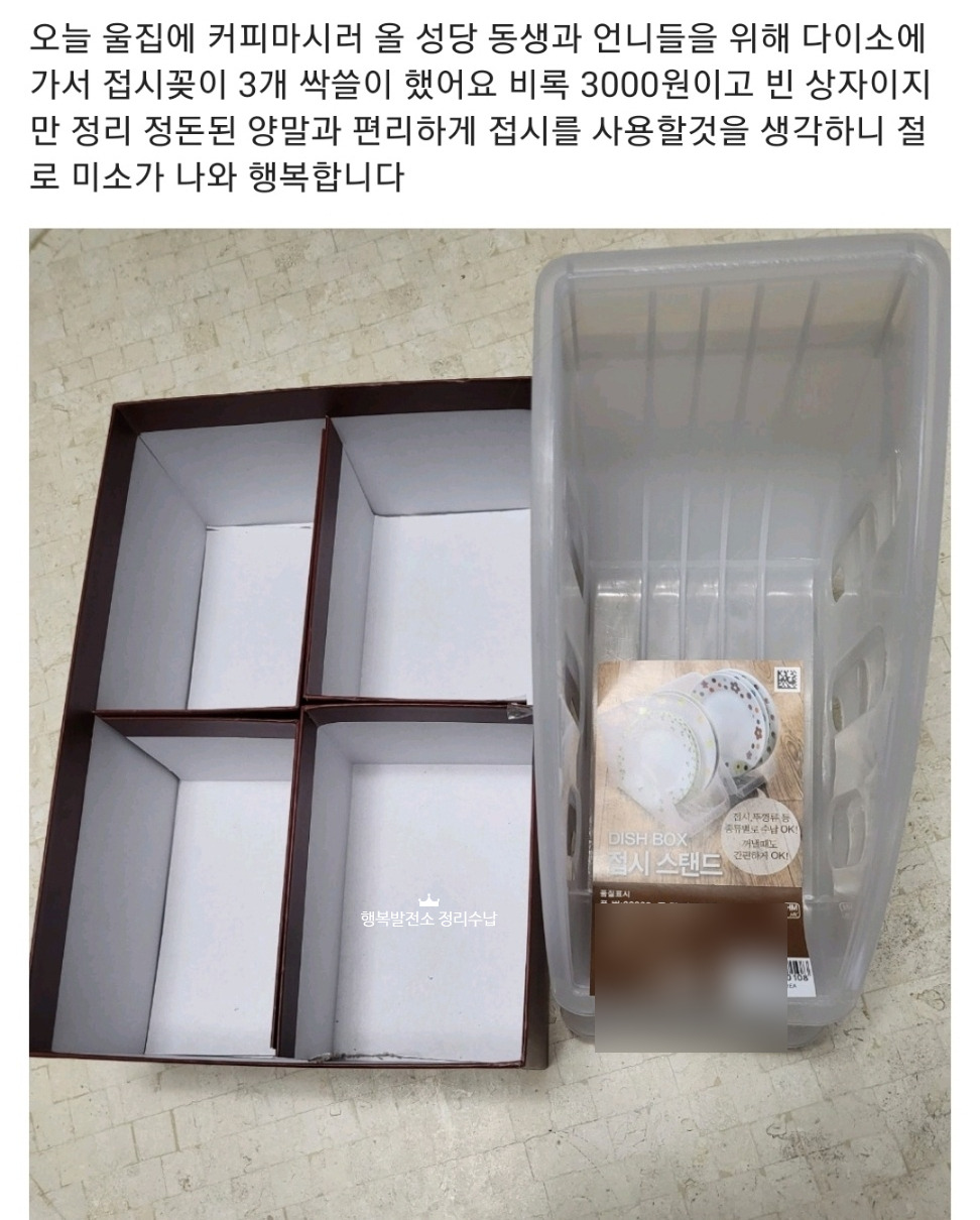 이렇게 고운 마음이 또 있을까! 몇 줄에 담긴 메시지는 한 권의 책 보다, 그 어떤 전문가의 말보다 더 큰 울림이 있다. 정리의 힘이다. 사람을 살리는 살림이 그러하듯 정리는 이웃사랑을 낳는 기적의 도구가 되기도 한다.
