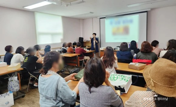 엘리베이터가 있다. 2층 강의실 입구, 두 분 선생님께서 생활지원사분들을 맞이한다. 멘트도 각각이다. 그만큼 잘 안다는 것이요 두텁다는 증거다. 씩씩한 담당 선생님의 강사 소개, 정말 어렵게 모셨다는 말씀에 박수가 터진다. 유익한 자리를 만들어준 담당자와 이 자리에 앉아있는 자신을 위해 감사의 박수로 시작했다.