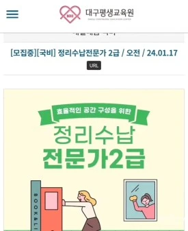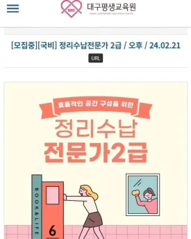 정리수납전문가 2급 자격증, 국비 지원과정 개강