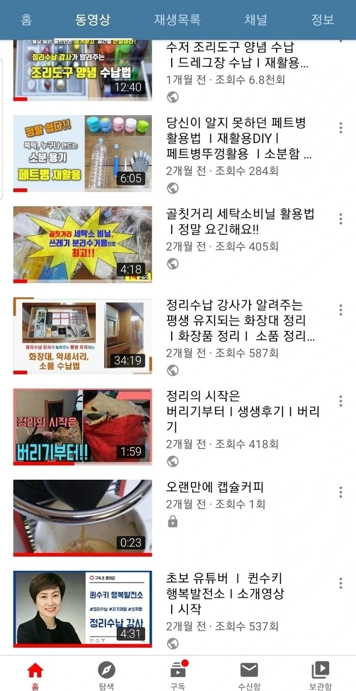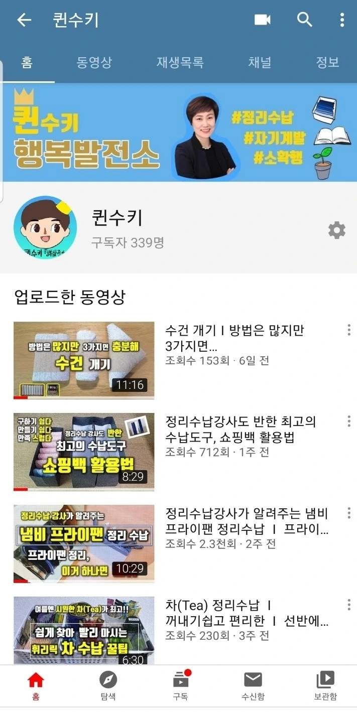 한달 6기 때 시작했던 유튜브 "퀸수키 행복발전소"는 한달 유튜브가 끝난 이후에도 주 1회 지속적인 업로드를 통해 현재 339명의 구독자와 14개의 영상이 올라와 있다. 나름의 대본을 쓰고 몇 번에서 몇십 번까지 같은 말을 되풀이하면서 촬영하고 서툰 실력으로 편집하고 업로드까지, 꽤나 많은 시간을 할애하며 공들여 만들었다. 영상마다 편차는 있지만 적게는 300회에서 많게는 6,800회라는 조회수를 기록했다. 이 또한 뿌듯하다. 누군가에게 도움이 된다는 건 굉장한 보람이요 희열이다. 성장이 몸으로 느껴진다.