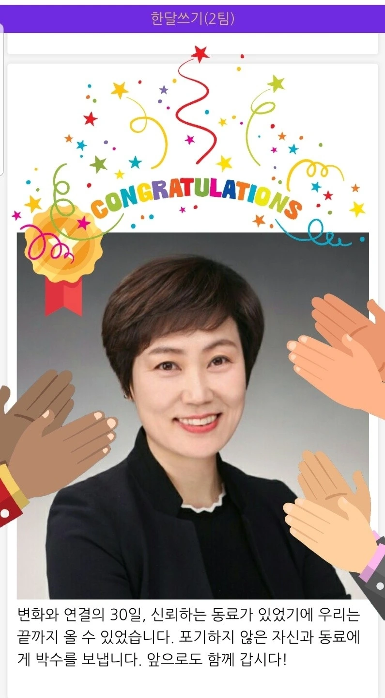 여러 가지로 바빠서 동료들과 적극적으로 소통하지 못한 점이 아쉽다. 그럼에도 불구하고 한달쓰기 리더와 라이브톡을 통해 동기부여에의 무한 자극으로 행동하게 만들어 주신 한달과 한달러들에게 진심으로 감사드린다. 작은 행동 하나를 지속했더니 습관이 되고, 그 습관은 기적을 만들어냈다. 한달 7기의 마지막 날, 지속 가능한 꿈을 다시 있을 한달 8기라는 큰 그릇에 담는 상상의 나래를 펼쳐본다.
