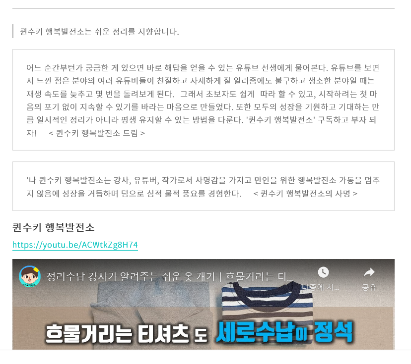 '나 퀸수키 행복발전소는 강사, 유튜버, 작가로서 사명감을 가지고 만인을 위한 행복발전소 가동을 멈추지 않음에 성장을 거듭하며 덤으로 심적 물적 풍요를 경험한다. < 퀸수키 행복발전소의 사명 >