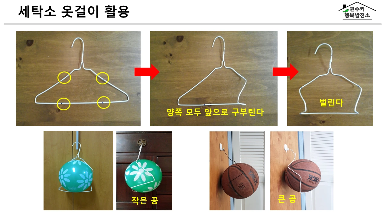 간편한 세탁소 옷걸이로 만든 공 걸이