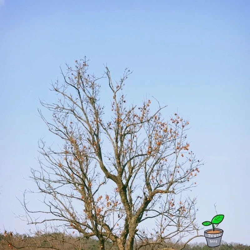 저 멀리 하늘과 조화로운 감나무가 들어온다. 자잘한 감이다. 사람이 오를 수 없을 높이다. 그럼에도 불구하고 베지 않고 그냥 둔 주인장의 인심이 느껴진다. 푸짐한 겨울 양식, 새 밥이다.