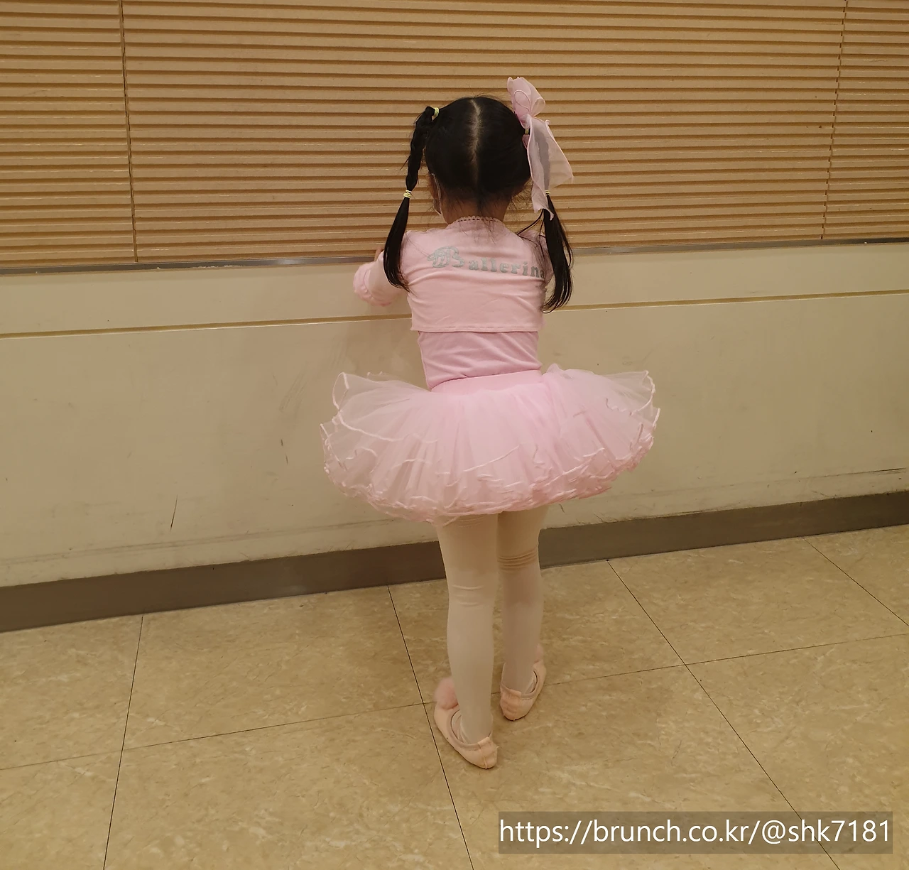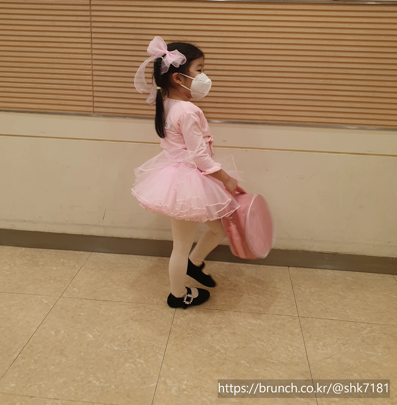 여자 아이라면 꼭 거치게 된다는 '공주 놀이' 그것이 오고야 말았다. 공주처럼 입기를 좋아하다 보니 누가 가르쳐주지 않아도 신기하게 분홍색만 찾고, 또 구두를 신고, 발레를 너무나 좋아하고 있다. 발레복만 입으면 세상 공주가 된 것처럼 들떠서 날아다닌다. 공주처럼 입고 자랑하며 다니는 딸의 모습을 보자니 처음에는 민망하고 부끄러웠는데, 이제는 볼 수록 귀엽고 사랑스럽다.