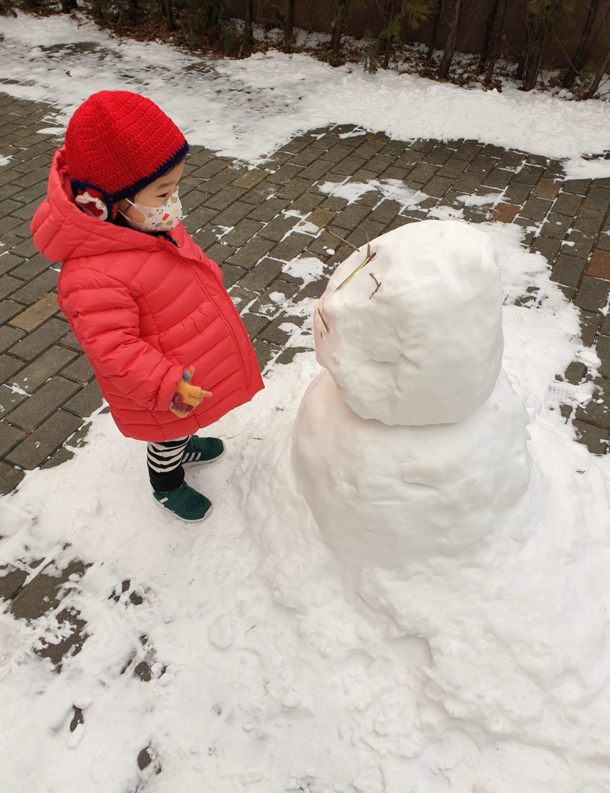 비도 안 오는데, 우산 들고 가고, 눈사람 덕분에 빨리 나가기도 한다.