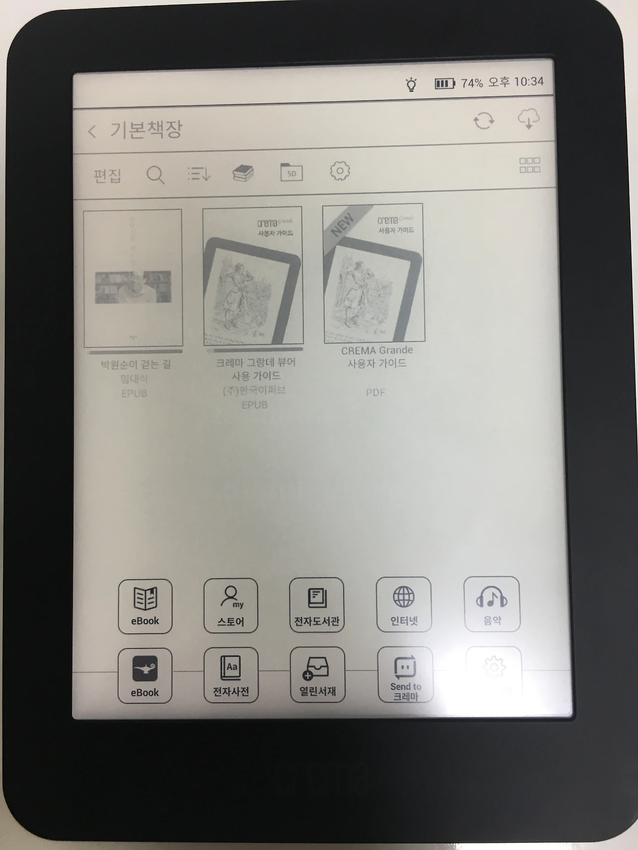 최근에 크레마 그랑데를 구입했다. 이미 킨들 DXG, 페이퍼화이트2, 아이패드 프로 12.9인치가 있지만, 국산 전자책 기기로 한글을 읽어야겠다는 뽐뿌를 제어하기 어려웠다. 물론 예전에 "크레마"를 구매하여 사용한 적이 있으나, 속도가 너무 더뎌서 정신건강이 해로워지는 것을 방치할 수 없었고 중고로 처분을 했다. 한번 데인 탓일까? 크레마 시리즈를 다시 사기 고민되었지만, 인터넷 후기에서 "크레마 그랑데"가 꽤 좋다고 하니 한 번 믿어보기로 했다.