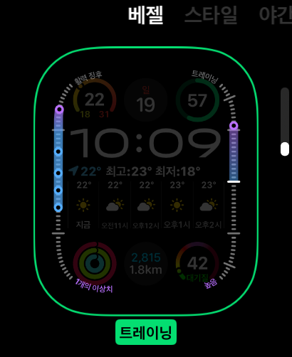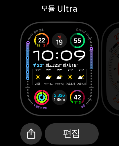 그러다가 애플워치 울트라 제품에서 워치페이스에서 울트라 모듈의 베젤을 트레이닝으로 설정하니 운동에 대한 동기부여를 더 많이 받게 되어 좋았다.