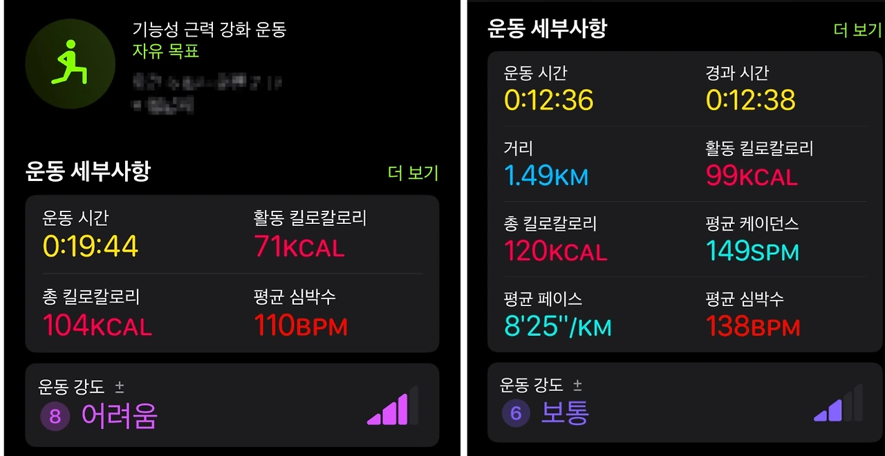 평소에 운동 링이 적으면 그냥 운동을 안했구나 싶은데, 트레이닝 란에서 매우 낮음이 뜨면 이건 좀 올려야 겠다는 스스로의 압박감?도 받는다.