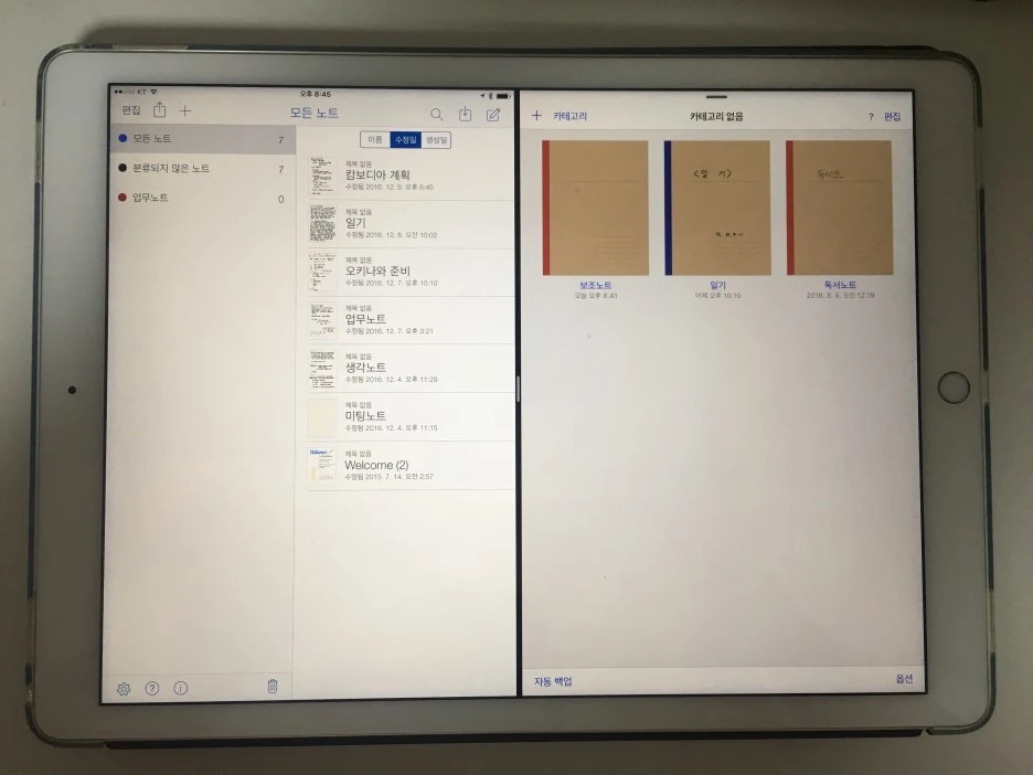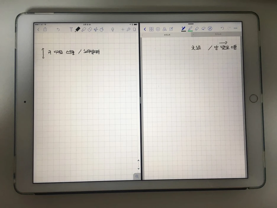굿노트는 원래 유명하고, 아이패드로 필기한다는 사람은 대부분 소유하고 있는 어플이다. 나 또한 굿노트로 정리한 업무노트나 단어장만 생각하면 이젠 없으면 안되는 킬러앱이 되었다.(굿노트 때문에 아이패드 프로를 구입) 다만 답답한 점이 있다면 어플 특성상 단면만 나타내기 때문에 페이지를 넘기면 그 뒷 내용을 까먹기 때문에 자꾸 스크롤을 하면서 보고 필기를 하게된다. 그러한 단점을 노타빌리티가 개선해준다. 다행히 아이패드 프로가 스플릿뷰를 지원해주기 때문에 서로의 단점을 보완할 수 있는 두 어플을 동시에 쓴다.
