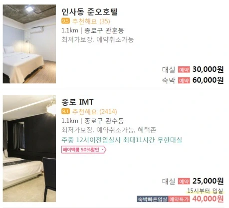 청구항에 쓰인 대로, 여기어때의 경우에도 숙박업소와의 협의 하에 페이백룸 객실을 선정하고, 사용자에게 페이백룸 객실과 일반룸 객실을 구분한 목록을 제공하며, 객실 이용(숙박 계약 체결, 숙박료 산정 및 결제, 객실 정상 이용 등) 이후 할인 쿠폰을 자동 발급하고 있다. 동일 숙소를 재방문 시 사용자는 할인 쿠폰을 이용할 수 있으며 페이백룸 객실이 아닌 일반 객실을 할인된 가격으로 이용할 수 있다. 그리고, 일반 객실에 대한 숙박료는 당연히 숙박업소로 지불된다.