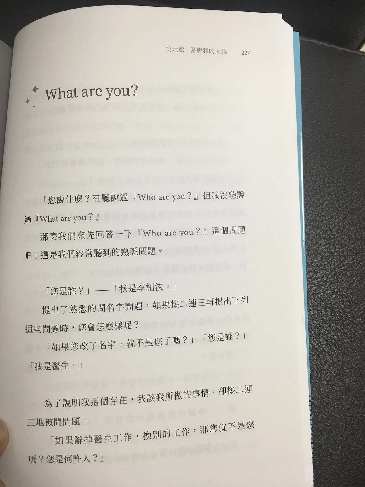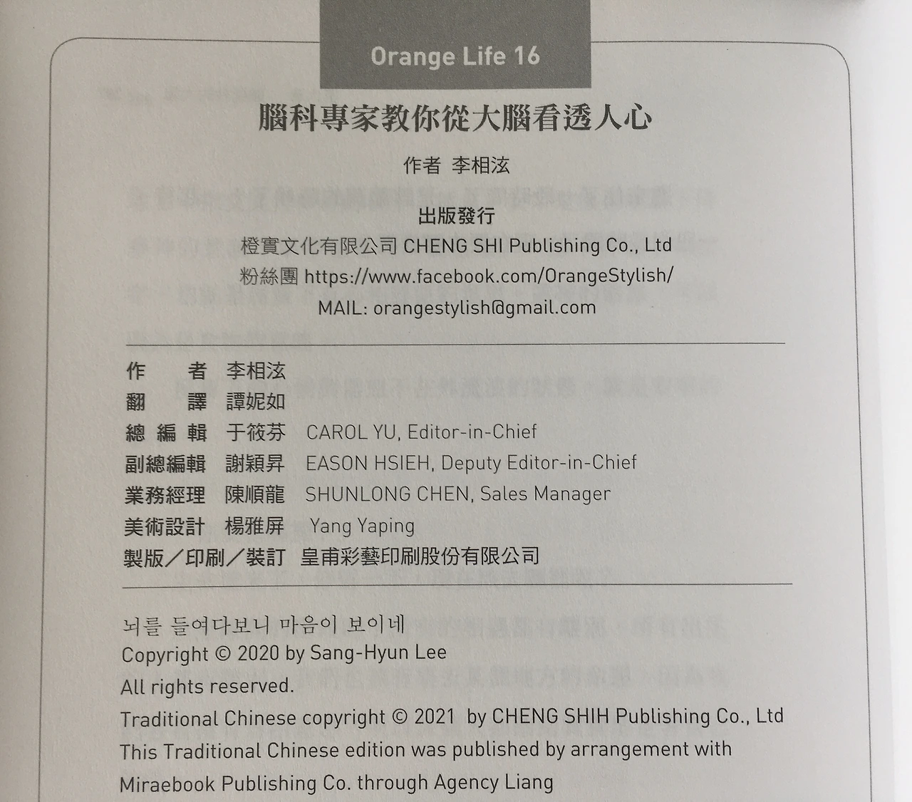 오늘 책이 두 권 배달되었습니다. 중국어판 <뇌를 들여다보니 마음이 보이네>가 저에게 전달된 것이지요. 책을 펼쳐도 온통 한자로 어떻게 번역되었는지 한자 문맹인 저는 알 수 없습니다. 눈에 들어오는 글자는 딱 세 가지. 제 이름 한자와 책의 한글 이름과 한 꼭지 제목 ‘What are you?’만 알겠더군요. 어쨌든 제 책이 외국어로 번역되어 신기하기만 합니다. 대만 독자들에게도 한국인 저자가 글을 쓰던 당시의 마음이 잘 전달되었으면 싶습니다.