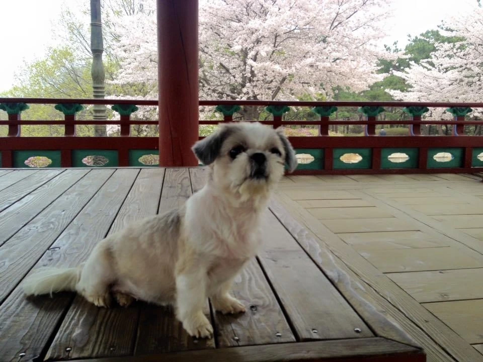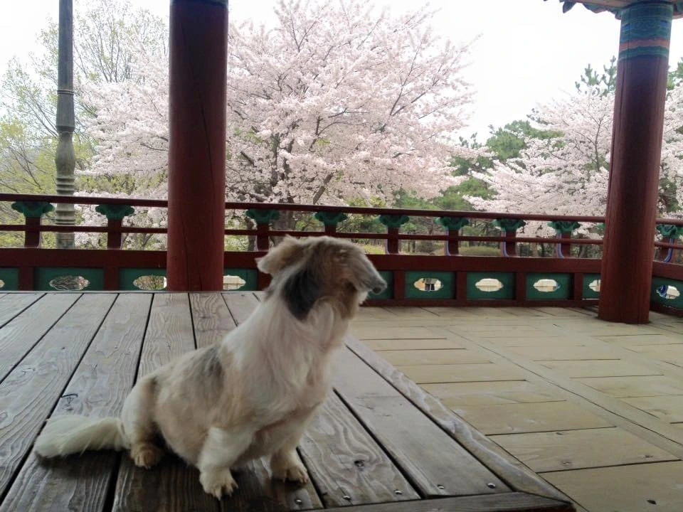 4월 15일은 저희 집 강아지 ‘마음’이의 생일입니다. 5년 전 생일 이브(?) 날 정발산 평심루에 함께 있었군요. 지금은 노견이 되어 집 근처를 벗어난 산책이 힘들지만, 5년 전 강아지는 그곳에서 벚꽃을 둘러보며 즐깁니다. 4월 중순에.