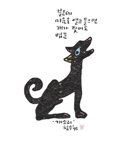 판화가 이철수는 한 걸음 더 들어갑니다. 마음을 열고 들으면 개소리가 법문이라고 일침을 놓습니다. 그렇지요. 법문이 뭐 있겠습니까. 그 소리에 온 마음 다 열고 들으면 법문이겠지요.