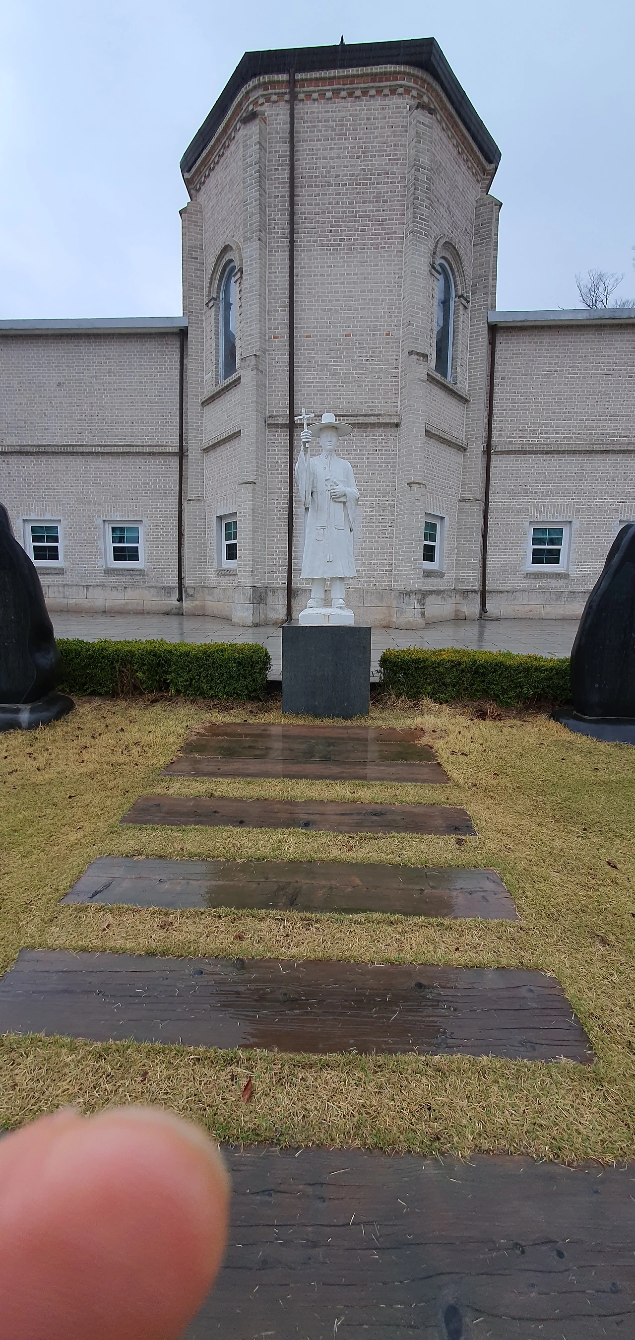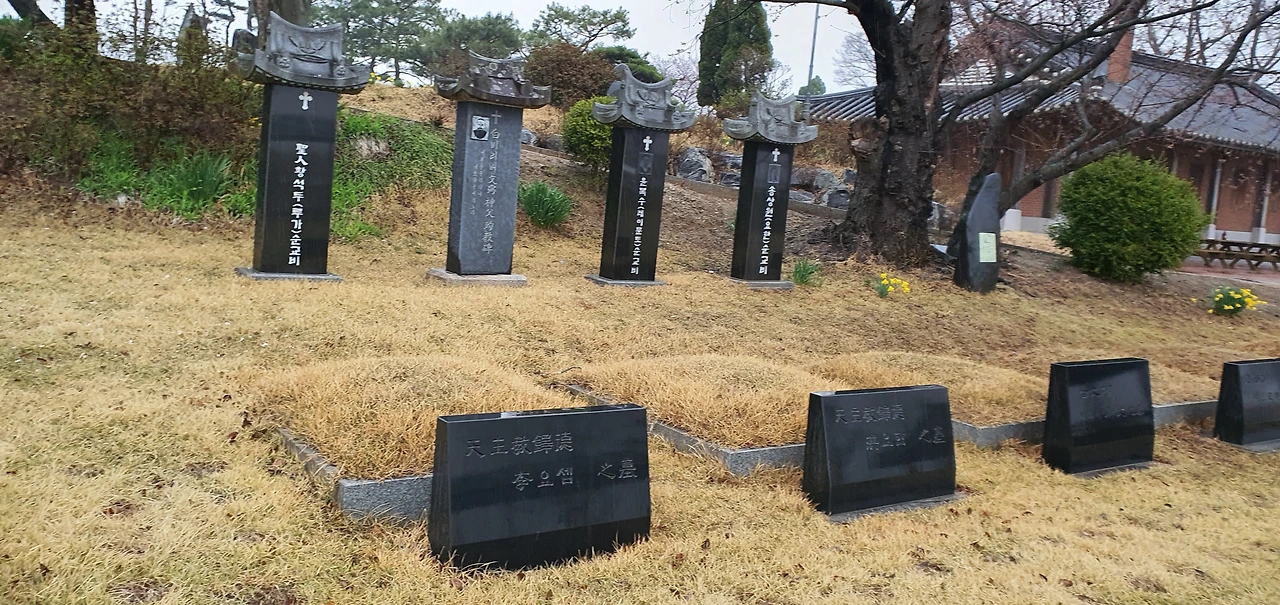 조금 내려가면 순교자 묘를 볼 수 있고 그 옆으로 한국천주교 최초 신부님인 김대건 안드레아 상이 서쪽 들녘을 바라보고 서 있습니다.
