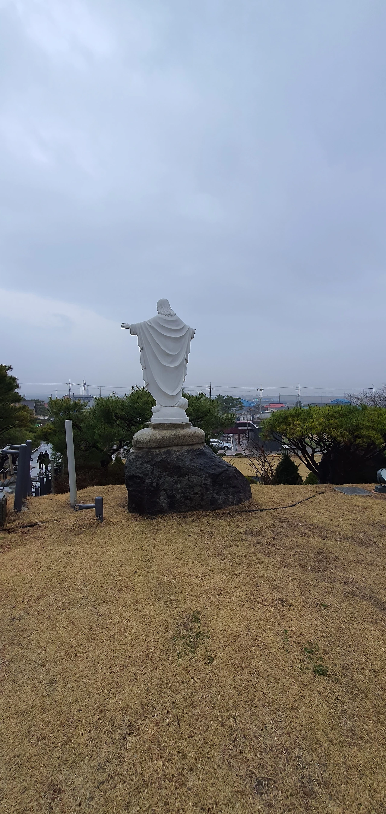 성당 계단을 오르면 왼쪽으로 두 팔을 벌리고 있는 예수님 상이 있습니다.