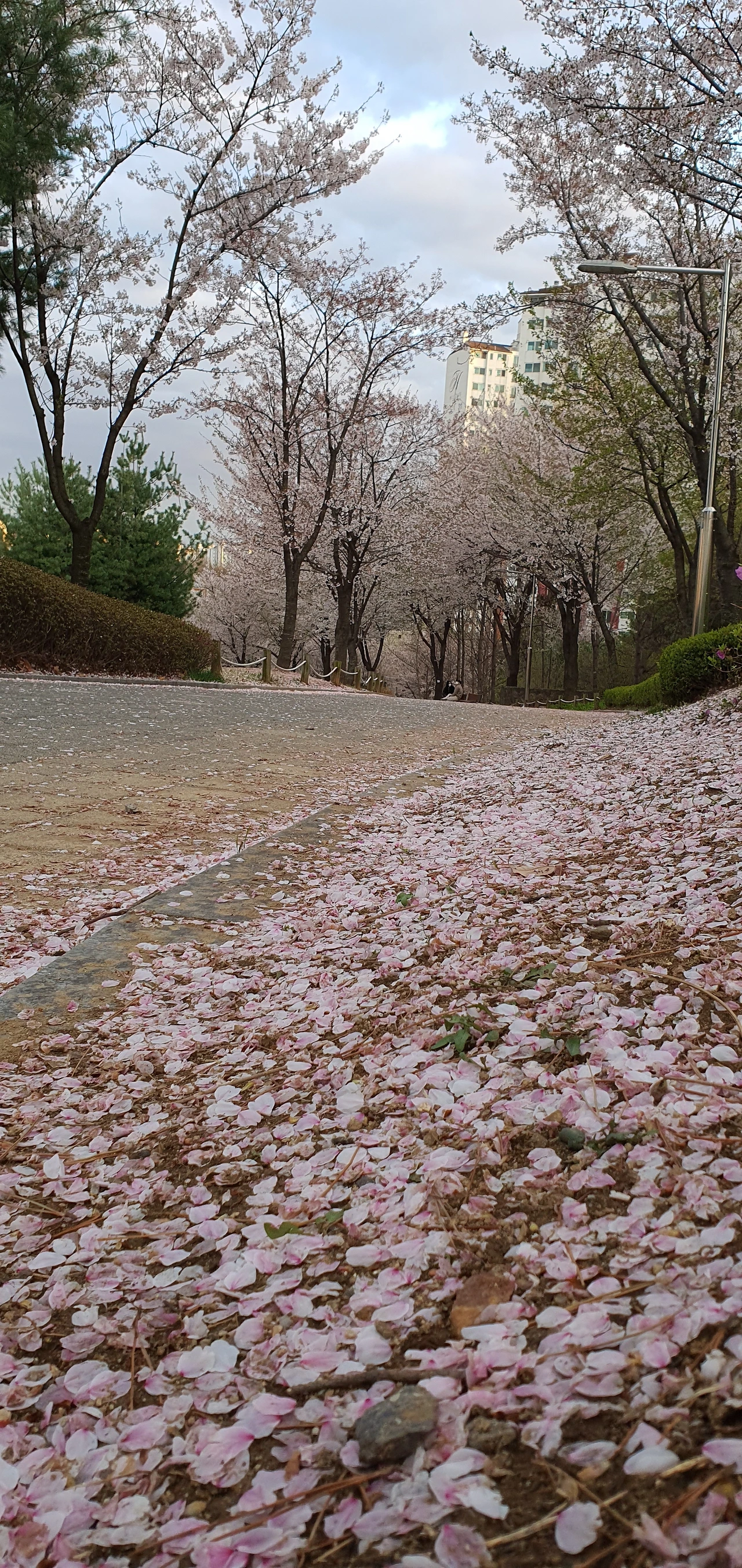 이제는 길 위마다 나뒹구는 꽃잎 사체들로 가득합니다.