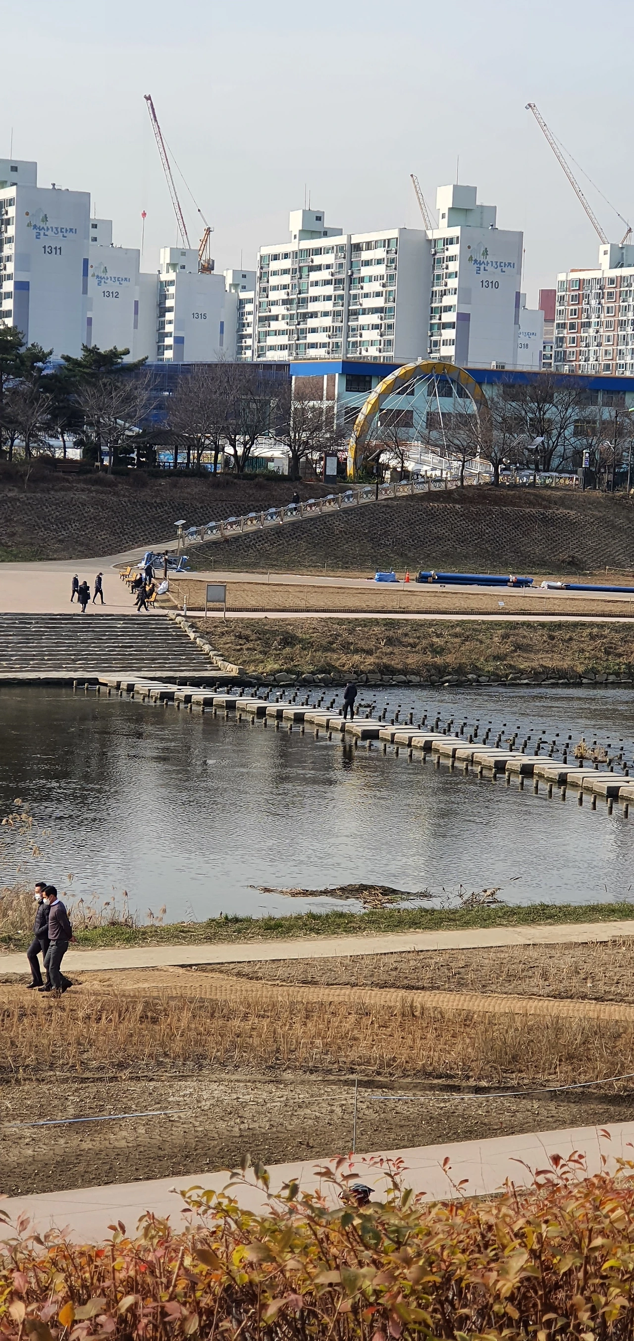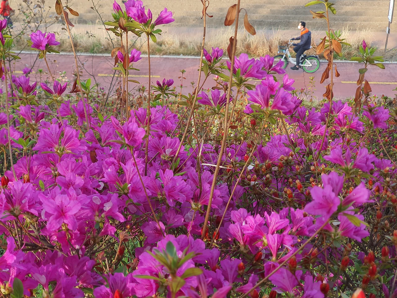 울긋불긋한 단풍이 멋들어지게 타오르고 있는 경치를 보고 있자면 자신도 모르게 연신 감탄사를 연발한다. 얼마나 나의 마음을 풍요롭게 해 주었으면 자신도 모르게 그렇게 감탄을 할까 모르겠다. 그 순간이 영원히 지속될 것이라는 착각을 하는 것은 아니겠지만 그래도 오래도록 추억으로 기억에 남을 것이다. 요즘은 출근을 승용차와 지하철 그리고 도보를 혼용한다. 여기에 도보를 넣은 것은 지하철역 한 정거장 정도를 걸어서 출근하기 때문이다. 어느 날 다 졌던 나무에 잎이 돋고 꽃이 피고 단풍이 들고 그런 과정을 몇 년 동안 반복해서 보았다. 요즘은 보도 위에 나뭇잎이 뒹군다. 아직 그렇게 기온이 내려가지 않았지만 돌다리 아니 돌 징검다리라고 표현하는 게 적절하다. 그곳을 걷자면 차가운 수온에 물소리가 더 청량해진다. 여름 한낮의 물소리와는 분명 차이가 난다. 아마 공기 밀도가 달라지고 수온이 달라져 귀에 들어오는 소리가 차이를 보이는 것 같다. 많은 철새들이 날아들고 광명시와 금천구에서 가꾸어 놓은 수변공원의 꽃들도 철철이 색을 달리한다. 이렇게 아름답고 귀한 소리도 어느 날인가는 더 이상 듣지 못할 수도 있지만 언제까지 보고 듣겠다고 생각도 안 해 봤고 내 것이라고 생각해 본 적이 없다.