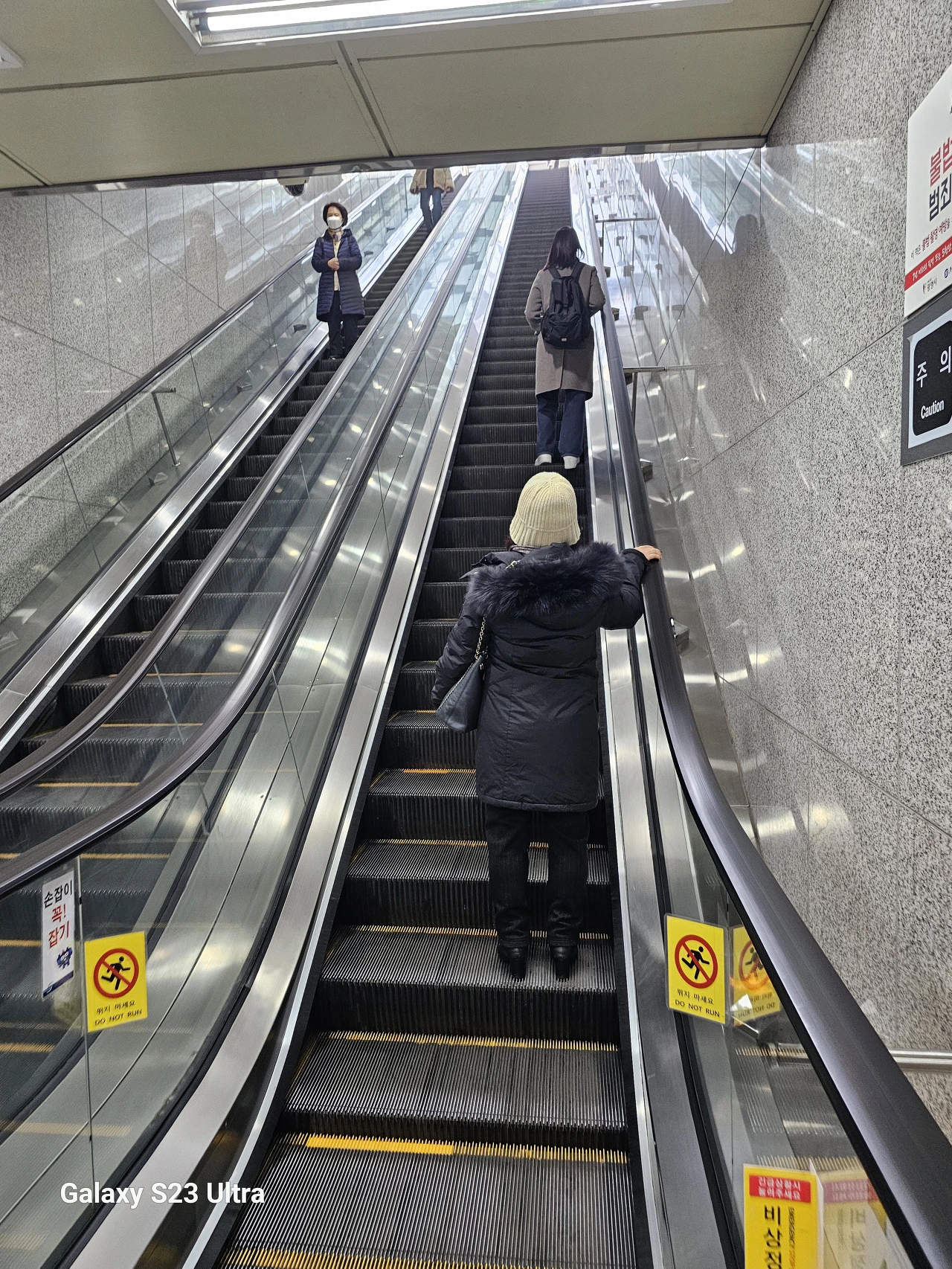 에스컬레이터를 이용해 역사를 빠져 나옵니다.