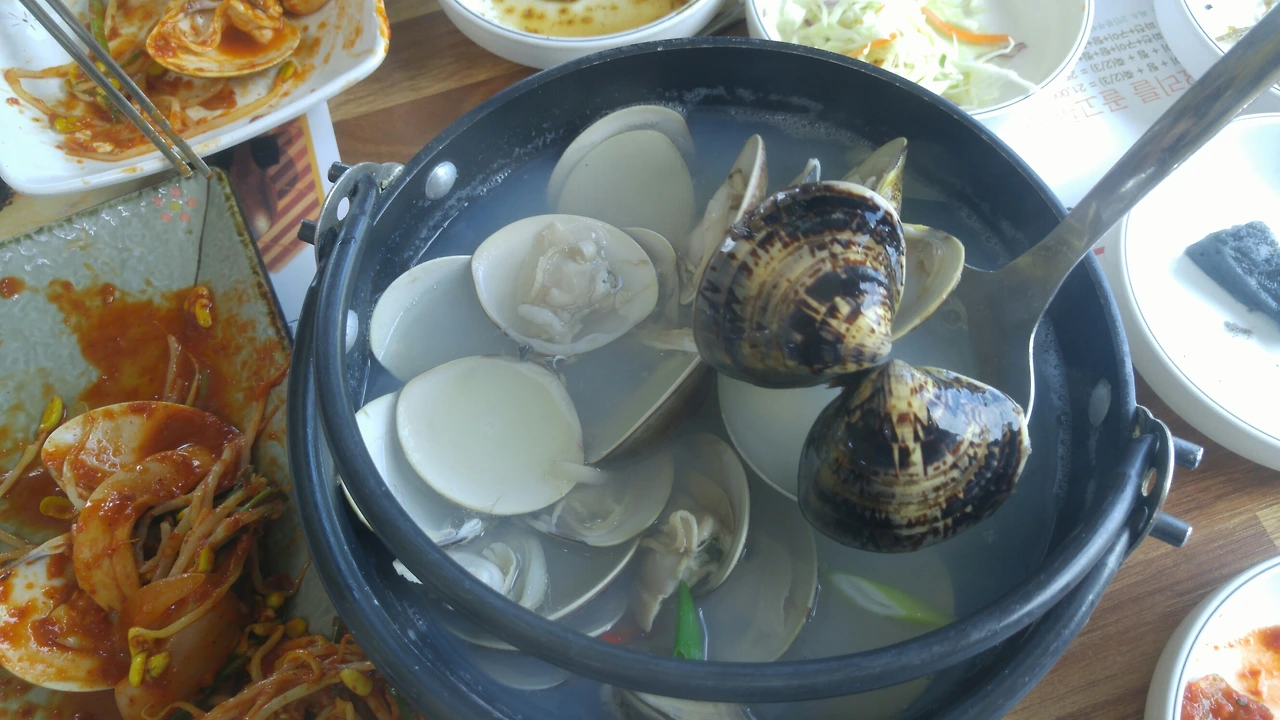 그리고 아마도 육수 맛을 냈던 것은 미풍인가 미원인가 하는 브랜드의 MSG를 넣었지 않았을까 싶어요. 칼국수를 한소끔 끓인 다음 그리고 텃밭에 나가 애호박과 고추, 파 등의 등속을 가져다가 송송 썰어 넣으면 칼국수 맛이 한층 풍성 졌지요. 가끔은 감자를 넣어 먹기도 했던 것 같습니다. 텃밭에서 공급되는 것이 어떤 식재료였느냐에 따라 칼국수 맛이 크게 달랐던 것 같습니다. 내가 갯벌에 가서 이합을 캐오면 그것으로 육수를 내기도 했고요.