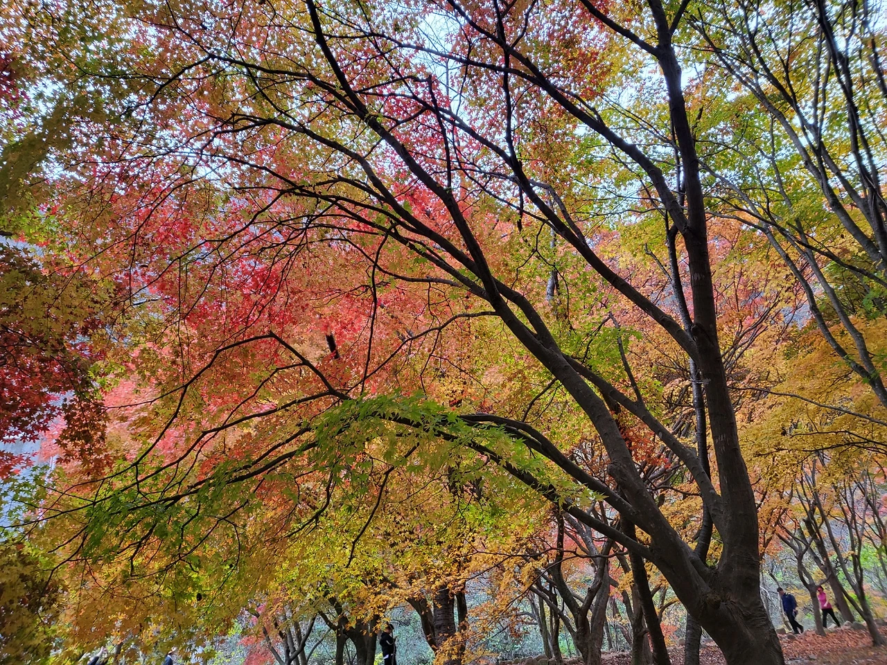 지난 폭염을 생각하면 이런 단풍을 기대할 수 있었을까? 지난 9월만 하더라도 섭씨 30 몇 도를 오가는 무더위가 연일 계속되면서 올 가을에 김장은 할 수 있을까 하는 염려를 했다. 무더위로 인해 가을무나 김장용 배추가 녹아내렸기에 말이다. 가을비 몇 번에 추위가 닥치고 사람들의 옷차림은 여름옷과 겨울옷이 갈피를 못 잡고 계절의 혼돈을 보여주기도 했다.