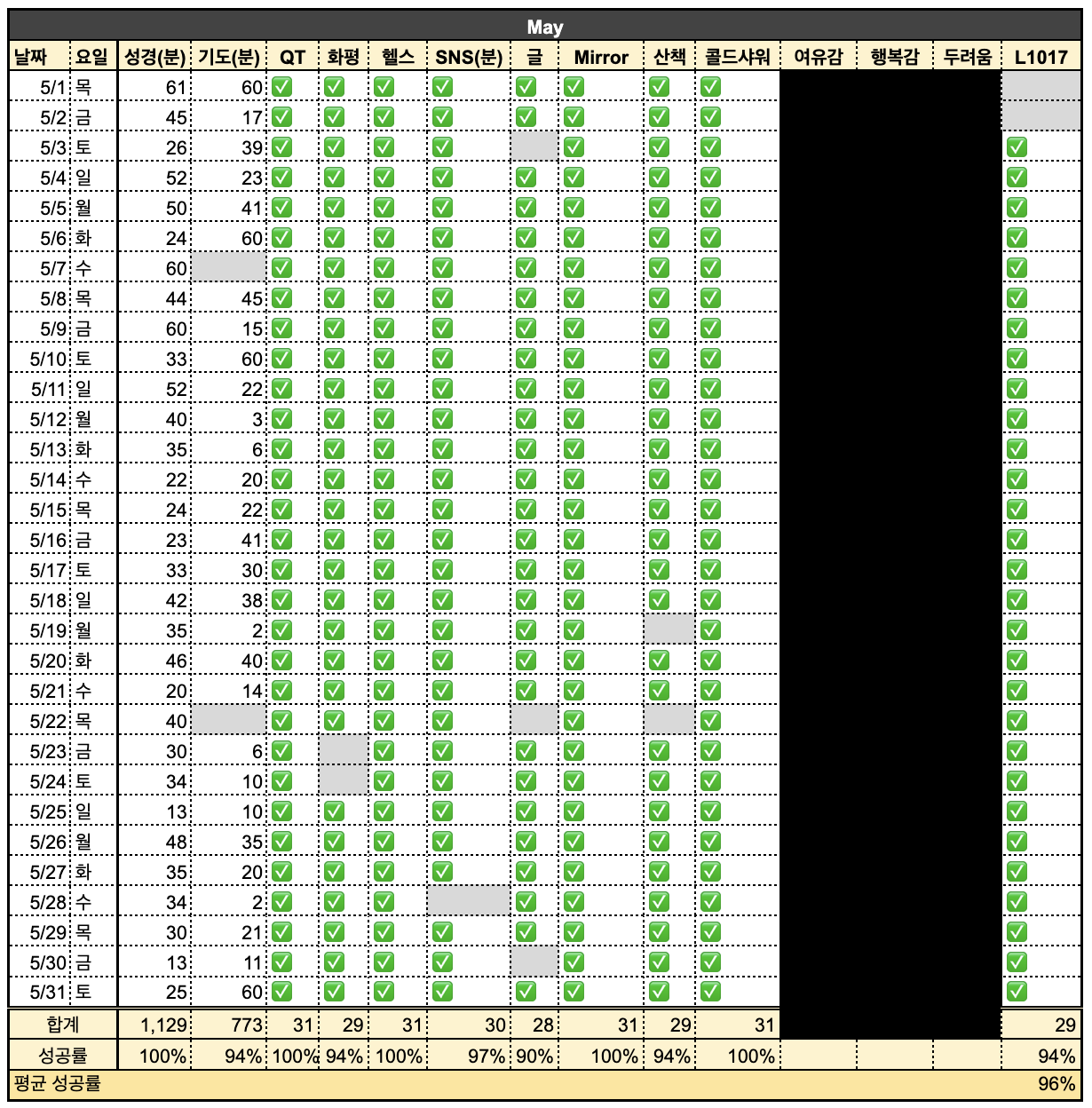 · 자녀의 탄생과 함께 성경과 기도 루틴이 떨어졌지만, 나름 다른 영역들에서 선방한듯.
