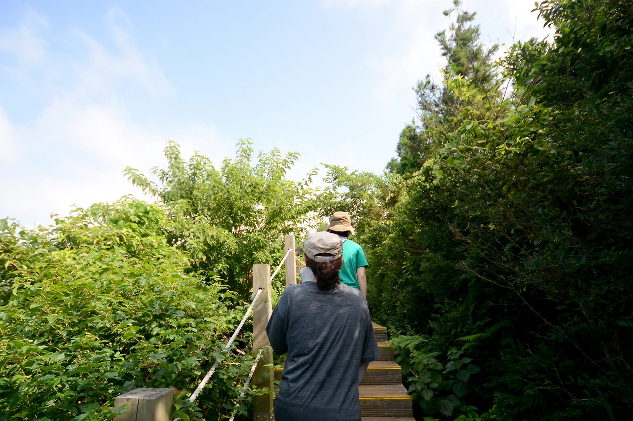 축 늘어져서 쉬느냐고 사진을 찍지 못했는데, 용암길을 벗어나기 전 마지막 쉼터에는 '벵뒤굴'이라는 풍혈의 결정체가 있다. 동굴 앞에 쇠창살이 쳐있고, 그 앞에 나무 의지가 놓여있었다. 그곳에 앉아 있으면 에어컨 바람과는 전혀 다른, 기분 좋은 찬바람이 불어와 온몸을 차갑게 식혀준다. 너무도 기분이 좋아서 눈을 감고 멍하니 앉아 있느냐고... 사진 찍을 생각을 못 했다.