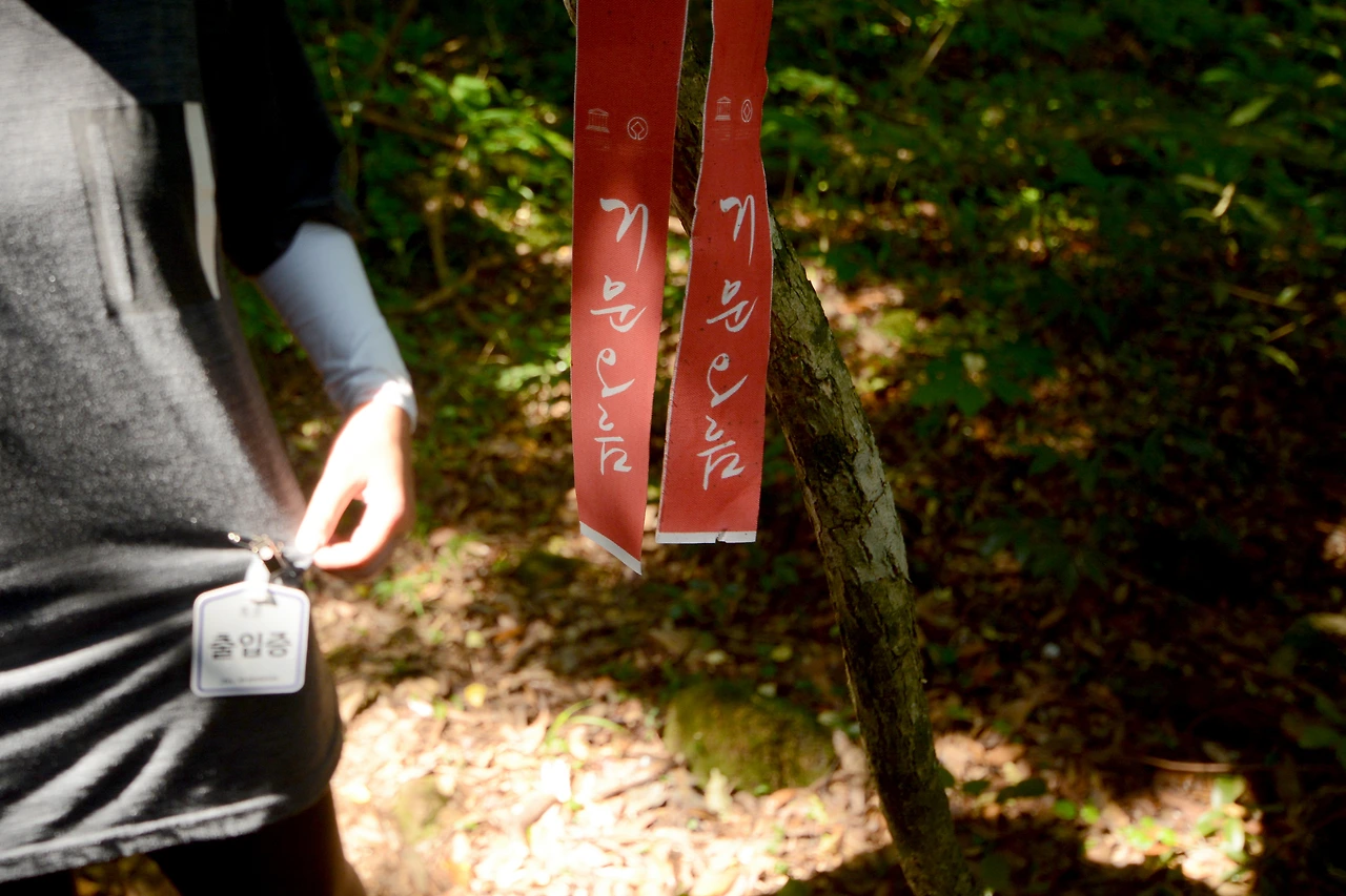 거문 오름 입구에서 이름과 연락처를 기입하고 '출입증'을 받아 몸에 걸어야만 입장이 가능하다.