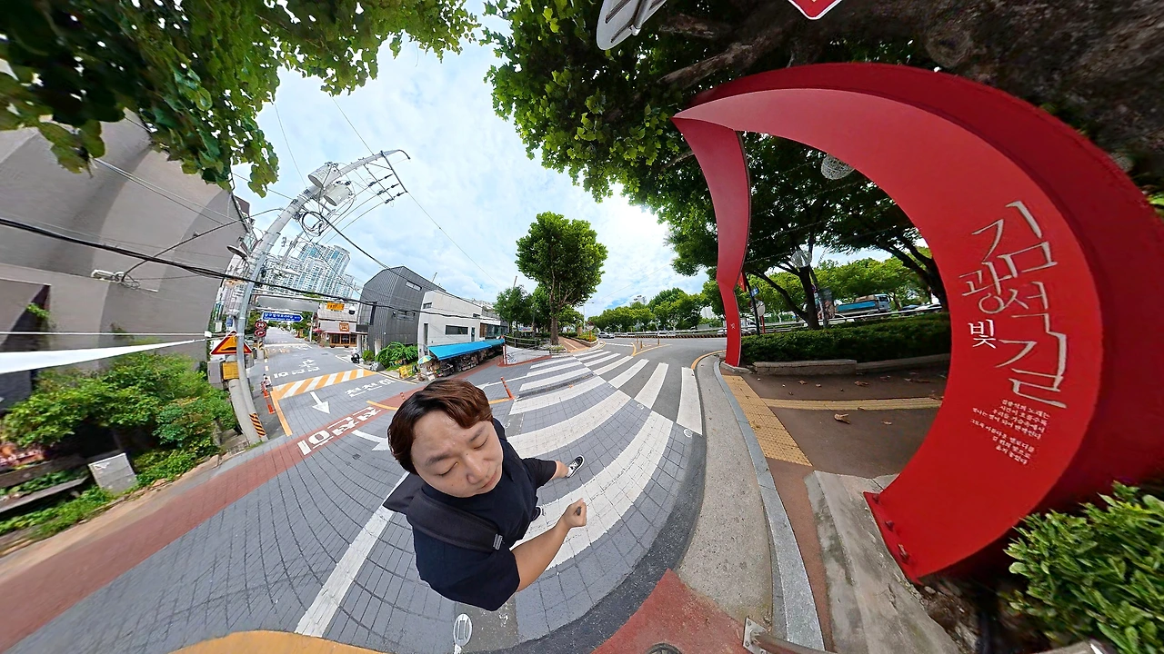 360 카메라의 특징은 한 번의 촬영으로, 내가 딱히 방향을 쫓으며 찍지 않아도, 정해진 길을 걸어가는 것 만으로 전방위적 영상 기록이 가능하다는 점이다. 편집 단계에서 전후좌우 상하영역을 모두 살펴볼 수 있고, 8K로 촬영된 영상을 4K로 뽑아낼 수 있기 때문에 쓰임새가 매우 좋다.