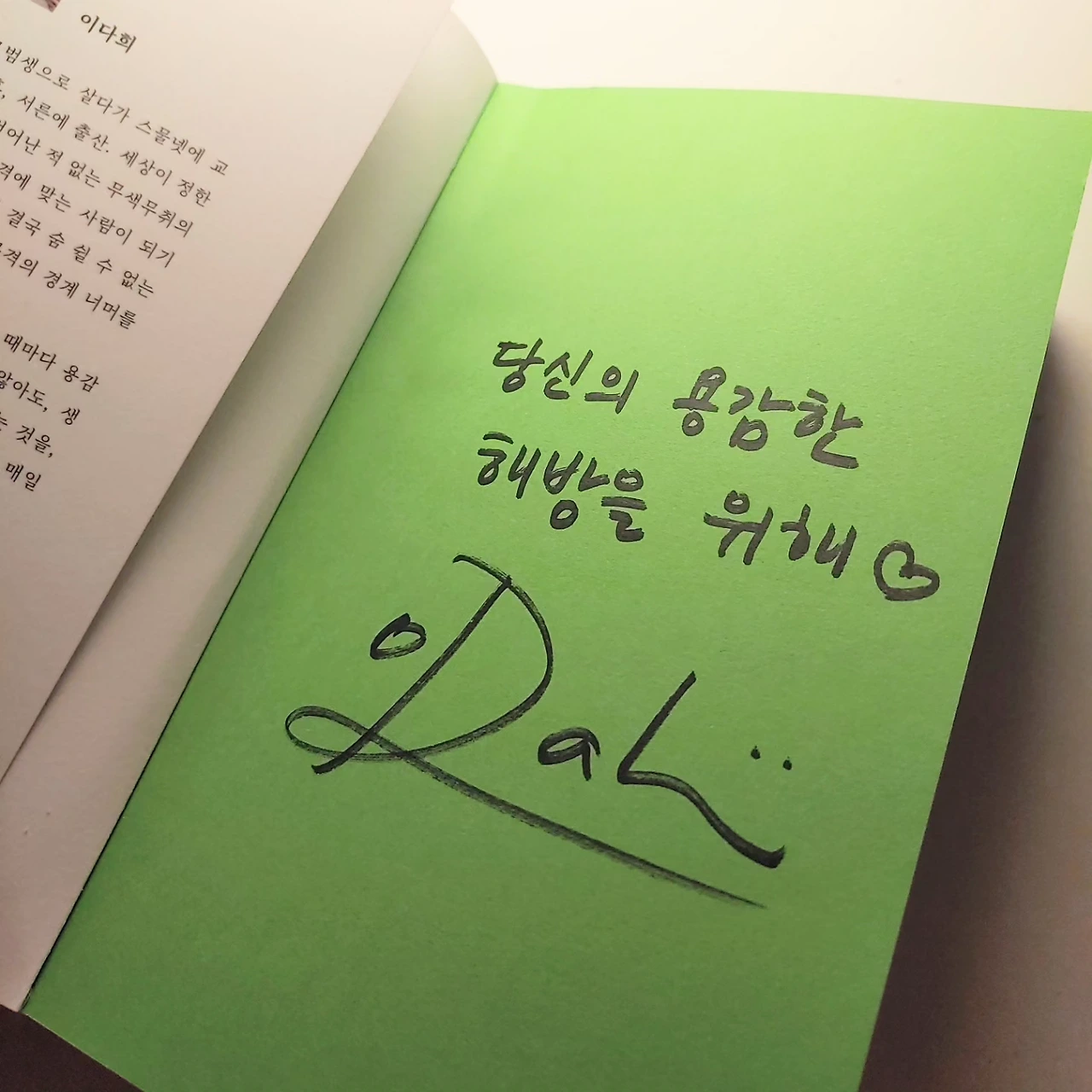 1.반전이 있는 책: '착한 아이이자 모범생으로 살다가 스물넷에 교사, 스물아홉에 결혼, 서른에 출산'. 그녀의 책을 펼치면 저자 소개에 이렇게 나온다. 사실은 책을 읽기 전, 사회적인 기준을 가져다 댔을 때 많은 것을 이룬 그녀에게 '내가 과연 공감할 수 있을까?'라는 생각을 했다. 나는 모범생이 아니었고 다른 부분도 꽤 다르니까. 하지만 이런 걱정이 무색하게, 첫 장에서 해방으로 나아가기 위하여 책을 읽고 글을 쓰게 된 이유를 읽으며 내 얼굴에는 눈물이 뚝 흘렀다.