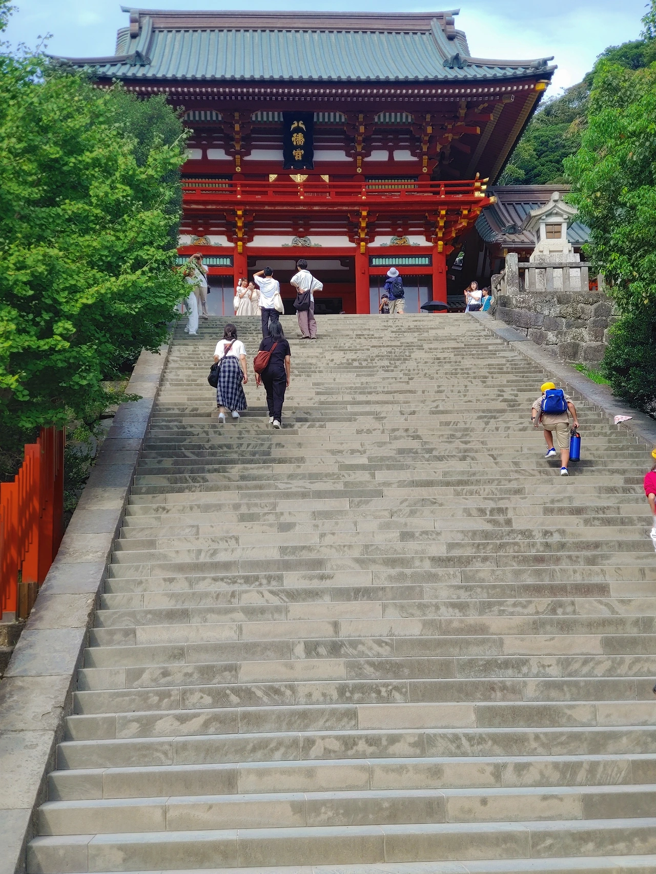 고쿠라쿠지역.쓰루가오카하치만구는 규모가 커서 1년 내내 일본인과 외국인 관광객이 줄을 잇는대. 그래서 평일인데도 예쁜 기모노를 입고 자갈이 깔린 길을 걷는 사람들, 편안해 보이는 흰색 셔츠와 남색 바지로 된 교복을 입고 수학여행 온 학생 수십 명, 길게 부적을 진열해 놓고 판매하는 무녀 옷을 입은 직원까지 사람 보는 재미가 쏠쏠했어. 난 혼자만의 잔잔한 시간을 좋아하지만 적당히 북적이는 신사도 좋아하나 봐. 넌 어때? 확실한 건 넌 키가 커서 기모노 체험을 하면 엄청나게 길이가 긴 기모노를 입어야겠네. 하하. 그래도 세상에서 가장 예쁠 거야.