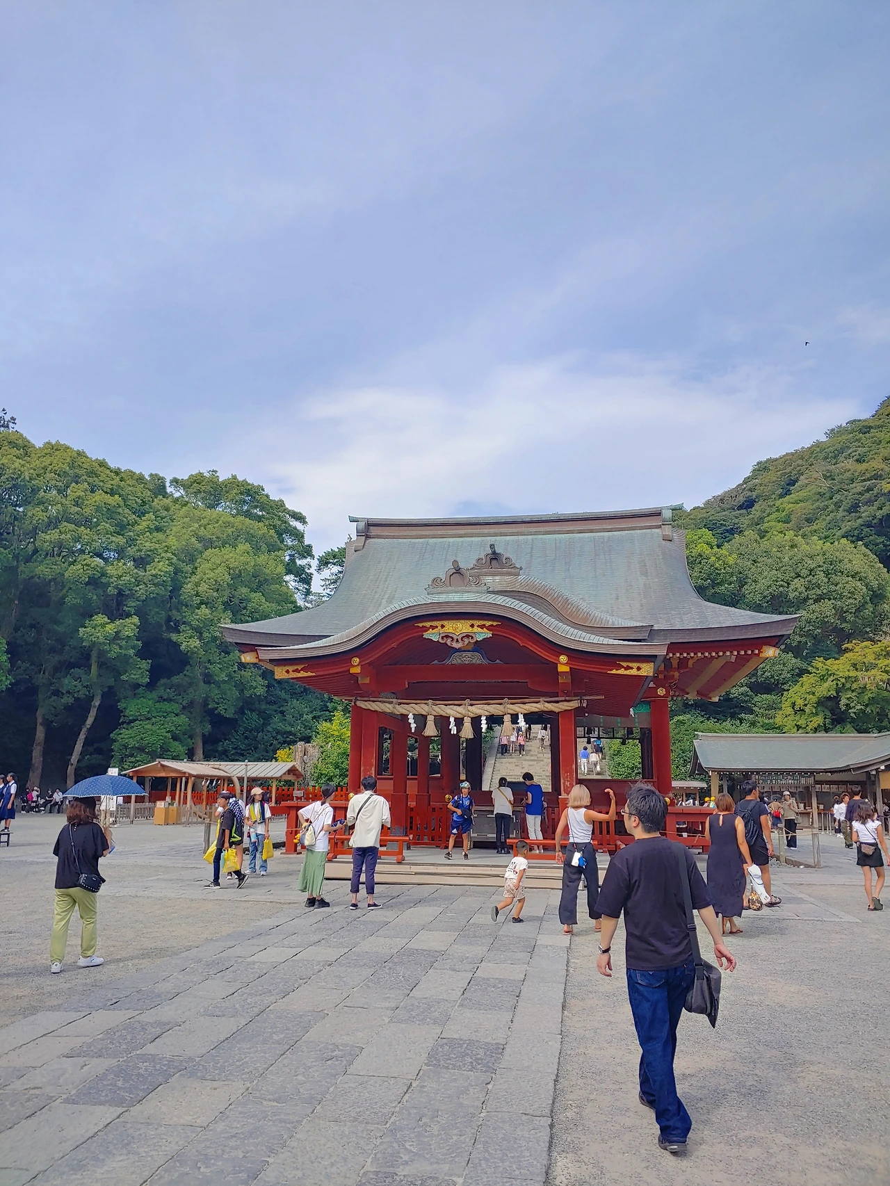 “‘쓰루가오카하치만구’라는 이름이 너무 어렵지? 히히. 나도 같은 생각이야. 도쿄 근교인 가마쿠라의 가장 끝 역인 가마쿠라역에서 내려서도 한참 끝으로 걸어가서 고마치도리 거리를 지나면 나오는 신사야. 예상외로 광활한 신사라서 놀랐어. 사실 가마쿠라는 전철도, 집도, 거리도 아기자기한 곳이 많았거든. SNS에서 일본 감성 명소로 나올 법한 곳들이랄까? 아까 산책하면서 고쿠라쿠지역도 봤는데 역은 작지만 푸른빛 나뭇잎과 역 앞 우체통, 초록색 표지판이 어찌나 조화롭게 잘 어우러지던지… 너도 분명 한눈에 반할 거야.