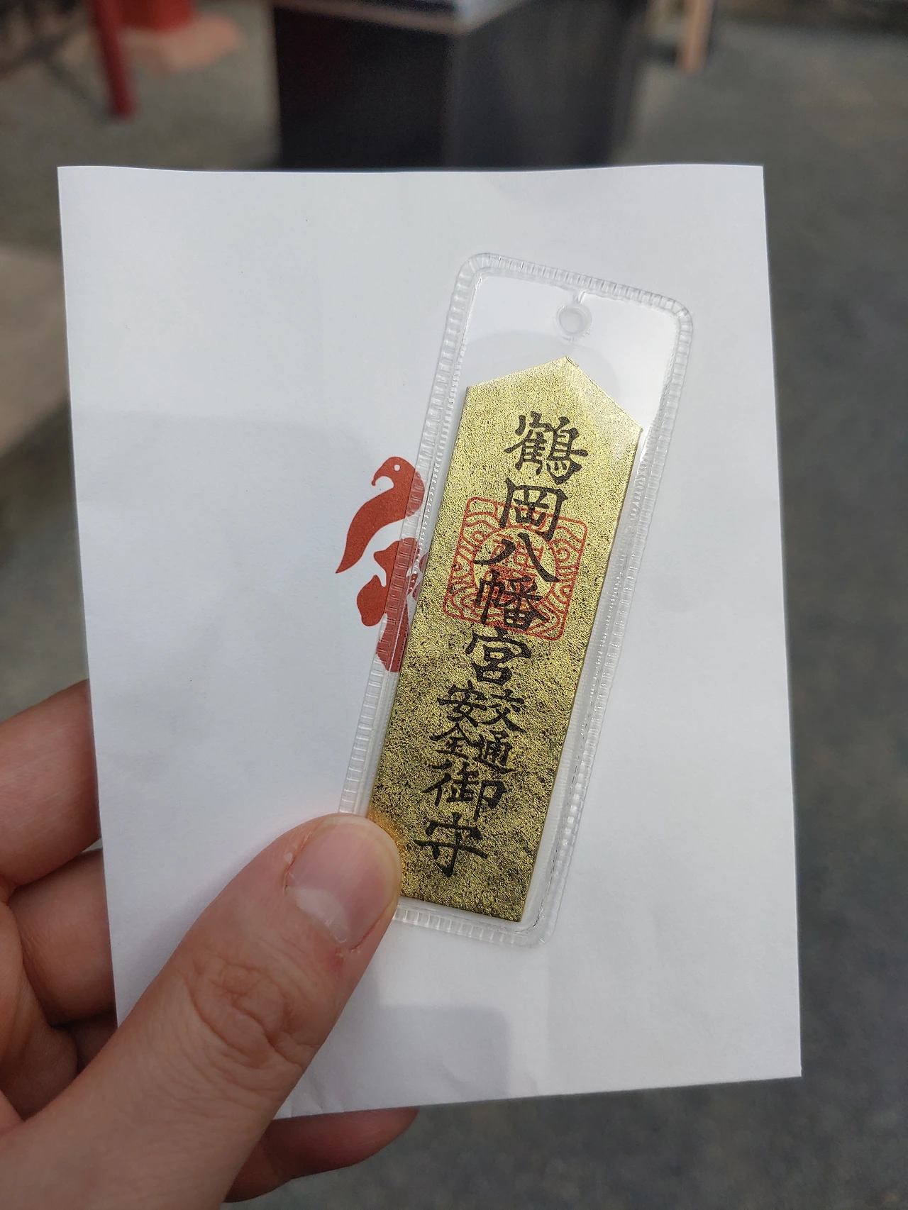 쓰루가오카하치만구의 부적. 교통 안전을 위한 부적을 구매했다.