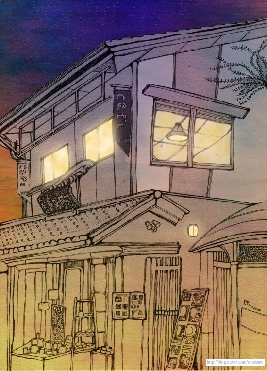 어느덧 가을이 지나고 겨울이 왔다. 시간은 뭘 하든 안 하든 흐른다. 속도의 차이일 뿐. 학교와 집 그리고 동네 마트와 문방구... 가끔 휘청거리는 신주쿠를 쳇바퀴 돌며 두 계절을 보냈다. 그리기도 어려운 한자들은 외워도 돌아서면 까먹기 일 수이고 이상하게 생긴 가타카나와 쓰는 것과 읽는 법이 다른 이 두얼 방식의 일본어에 나는 서서히 적응 중이다. 학교에서 친한 동생들도 몇 생겼고 선생님들과 가끔 어설픈 수다를 떨고 옆집으로 새로 이사 온 한국 여인과 금요일 밤이면 동네 이자카야에 가서 맥주도 한잔하게 되었다. 일본은 우리와 참 다르다. 사는 방식도 생각하는 방식도. 소심하고 낯가림이 심한 이들이 어떻게 어마 무지한 경제 대국이 되었을까? 그들이 만들어낸 놀라운 디자인과 건축물들은 볼 때마다 감동이지만 도대체 이런 걸 만드는 애들은 어디에 숨어 있는 걸까? 매일 얼굴을 부딪히는 저들 속에 있기는 한 걸까? 오늘도 학교 앞 카페에서 숙제를 하다가 좁은 테이블을 하나씩 끼고 책을 보거나 핸드폰을 만지작 거리는 일본 사람들을 가만히 둘러본다.