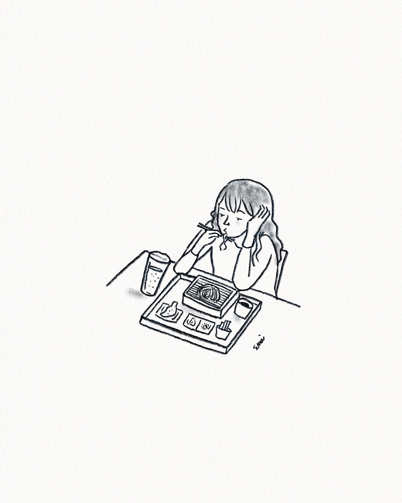 로컬 맛집의 힘은 참으로 대단하다. 시장 골목 안 백다방보다 작은 크기의 소바집에 긴 줄이 늘어서있다. 연령대도 제법 다양하다. 방송을 한 번쯤은 탄 을지로 3가나 종로의 뒷골목도 아니고… 주택가만 즐비한 이 동네까지 소박한 맛집을 찾아 사람들이 온 것이다. 궁금한 마음에 '고독한 미식가'의 주인공처럼 커튼이 반쯤 내려진 창으로 식당 안을 힐끗 훔쳐봤다. 4개의 테이블과 한쪽 벽에 붙여놓은 기다란 테이블이 전부다. 테이블과 의자의 좁은 틈새로 젊은 아르바이트생이 부지런히 음식을 나른다. 나도 모르게 군침을 꿀꺽 삼키다 늘어선 줄 앞에 놓인 대기자 명단 노트를 집어 들었다. 대기순번 37번. 음… 오늘은 힘들겠군. 그렇게 발길을 돌리기를 여러 번… 그러나 로컬의 맛집 근처에 사는 장점을 등에 업고, 생각이 날 때마다 그 앞을 지나면서 드디어 제일 줄이 짧은 시간대를 알아내기에 이르렀다. 3시부터 브레이크 타임이니까, 가장 손님이 뜸한 시각은 다름 아닌 2시 반경이며, 요일 또한 무슨 이유인지는 모르겠으나 비교적 금요일이 가장 한산했다. 내 예상은 적중했다. 어느 금요일 2시 20분. 나는 고대하고 고대하던 소바집에 입성했다. 그것도 제일 좋은 자리인 창가 테이블을 안내받고 자루소바와 가지튀김과 시원한 생맥주 한잔을 주문했다. 그러고 보니 도쿄 유학시절 역전앞의 서서 먹는 소바집에서 자주 저녁을 때우곤 했는데, 그때마다 소바를 안주삼아 마시던 맥주 한잔이 너무 맛있었다. 차가운 맥주와 달짝지근한 쯔유에 담근 소바가 오묘한 맛의 궁합을 이루며 끝도 없이 들어갔다. 오늘 이 소바집에서 그때의 맛을 느낄 수 있으려나? 음식은 추억이라고 했는데, 혼자 먹는 밥이 무슨 추억이 될까만은, 그럼에도 불구하고 나는 도쿄 유학시절의 나를 소환해서 내 앞에 앉혀놓고, 그때를 떠올리며 도란도란 맛있게 먹을 참이다. 어느새 내 앞에 놓인 차가운 맥주 한잔을 크게 한 모금 삼키고 나의 소바를 기다린다. <아네고 에미>