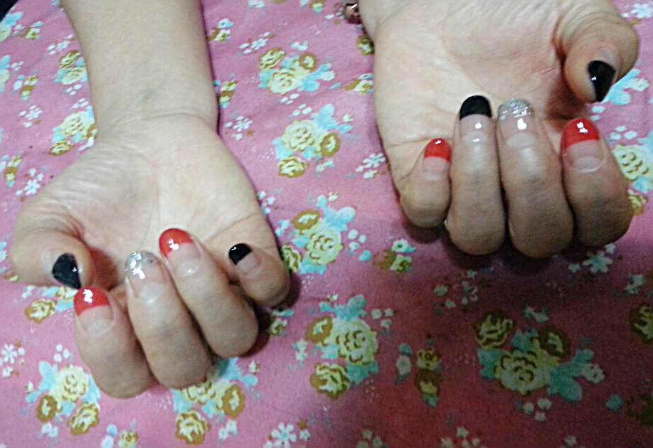 엄지에는 좀 특이하게 프렌치 넣고 큐빅도