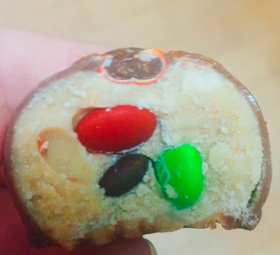 이렇게 알록달록한 초콜릿이 콕콕 박혀있어요.
