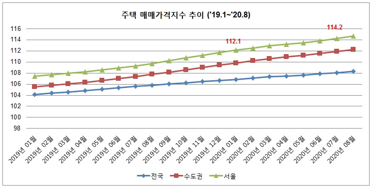 서울 단독·다가구주택 매매 가격지수를 보면 2019년 9월부터 110을 넘겼고, 올 들어서는 112에 진입했으며 7월에는 114.2로 집계됐다. 이는 해당 통계가 집계된 2003년 이후 최고치다.